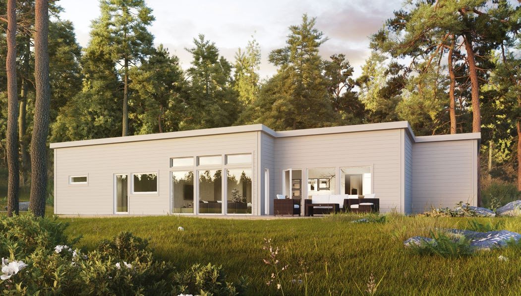 Ett hus med ”allt i ett”. Den kopplade carporten och förrådet gör att det inte behövs fler byggnader på tomten. Kök och vardagsrum ligger i fokus och genom möjligheten till 2,70 m i rumshöjd kan fönster från golv till tak maxa utsikten.