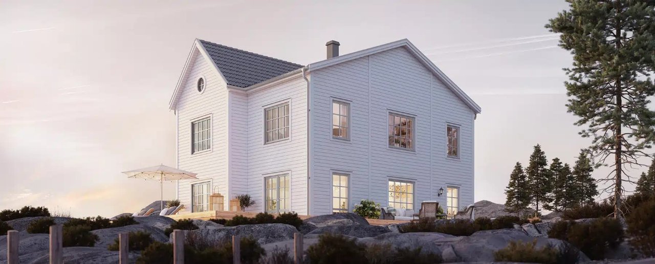 Här har vi 169 tilltalande och välplanerade kvadratmeter för den större familjen. Den klassiska husmodellen har entrén smart placerad på gaveln, vilket möjliggör en placering även på den trängre tomten. Det rymliga kapprummet ligger smidigt i direkt anslutning till entrén. Altandörrarna i kök och vardagsrum skapar en naturlig länk mellan insida och utsida. Särskilt härlig är den precis vid köksdelen – dina egenodlade örter är bara några steg bort. På våning två råder lugnet med ytterligare fyra sovrum utöver det på våning ett, allrum och badrum med möjlighet till både dusch och badkar.
